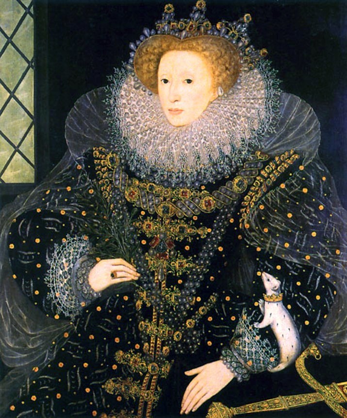 الیزابت اول(در این نقاشی ملکه الیزابت را نشان می دهد که در پشت وی دو